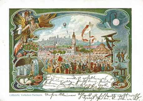 Запуск воздушного шара на Октоберфесте. Слева — пивные кружки.