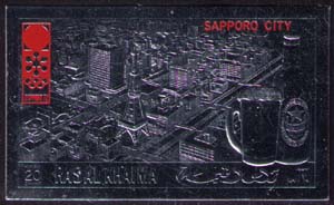 Рас-эль-Хайма, 1972, 20 Dh. П. тиснение на серебряной фольге. красная