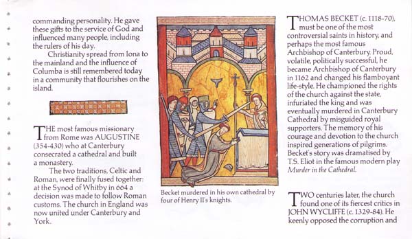 Буклет почтовых марок. На одной из страниц буклета — убийство Бекета четырьмя рыцарями Генриха II