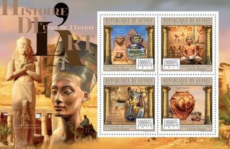 Марки серии изданы в малом листе. На поле листа — бюст Нефертити (Берлин, Египетский музей).