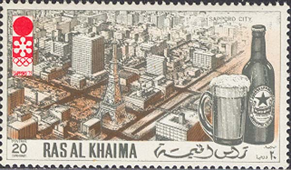 Рас-эль-Хайма, 1972, 20 Dh. П. офсет. 13 и б/з. многоцветная