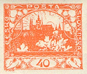 Чехословакия, 1918, 40 h. П. высокая. Б/з. красно-оранжевая
