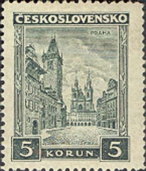 Чехословакия, 1929, 5 Kc. П. металлография. 13 (3/4). темно-зеленая