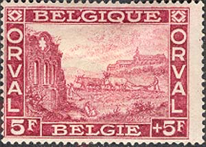 Бельгия, 1928, % fr. + 5 fr. П. металлография. 14 х 13 (1/2). карминная