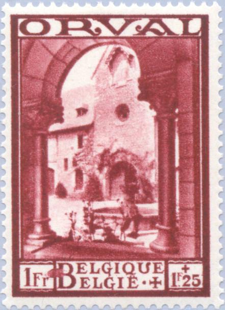 Бельгия, 1933, 1 fr. + 1.25 fr. П. глубокая. 14 x 13 (3/4). карминно-коричневая