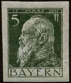Германия. Бавария, 1911, 5 pf. П. высокая. 14 х 14 (1/2). зеленая