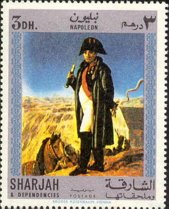 Другие марки серии: Шарджа, 1970, Битва при Йене Шарджа, 1970, Битва при Йене Шарджа, 1970, Битва при пирамидах Шарджа, 1970, Битва при пирамидах Шарджа, 1970, Битвы при Йене и на Москве-реке Шарджа, 1970, Бонапарт на Аркольском мосту Шарджа, 1970, Бонапарт на Аркольском мосту Шарджа, 1970, Наполеон Бонапарт, лейтенант Шарджа, 1970, Наполеон Бонапарт, лейтенант Шарджа, 1970, Наполеон в 1814 году |