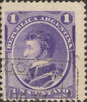 Аргентина, 1867/1874, 1 c. П. высокая. 12. фиолетовая
