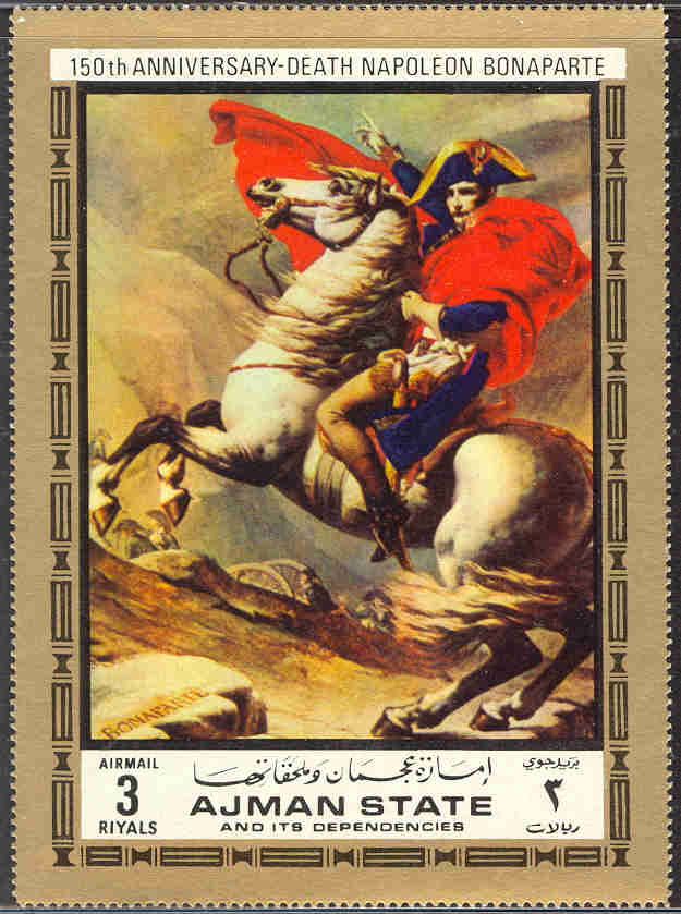 Другие марки серии: Аджман, 1973, Битва при пирамидах Аджман, 1973, Бонапарт на Аркольском мосту Аджман, 1973, Бонапарт после битвы при Маренго Аджман, 1973, Император в коронационном костюме Аджман, 1973, Коронация Наполеона и Жозефины Аджман, 1973, Наполеон в комнате Римского короля Аджман, 1973, Наполеон в Мальмезоне |