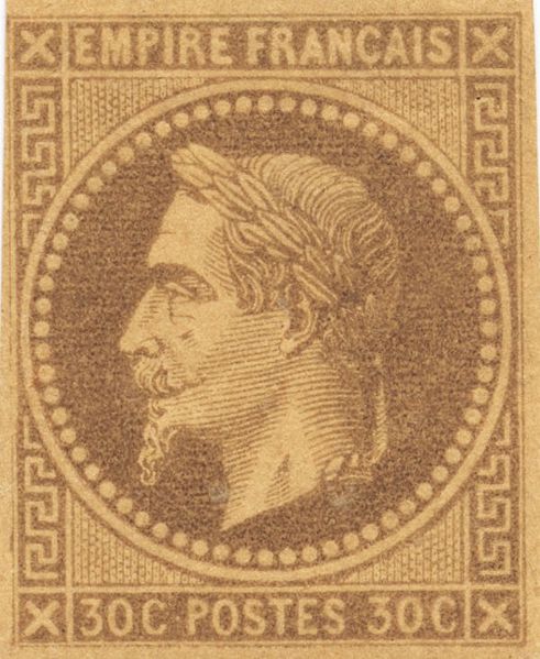 Французские колонии, 1871—1872, 30 c. П. типографская. Б/з. коричневая