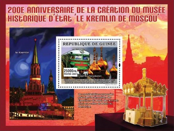 Локомотив Транссибирского экспресса, купола Московского кремля.