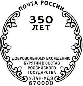 Улан-Удэ. 350-летие добровольнму вхождению Бурятии в состав Российского государства. Памятный текст, бурятский орнамент (переводная дата).