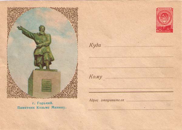 Горький. Памятник Кузьме Минину (скульптор Александр Колобов, 1943). В 1980-х памятник был перенесен на родину Минину в город Балахну.