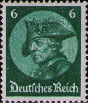 Германия, 1933, 6 pf. П. глубокая. 14 х 14 (1/4). черно-зеленая