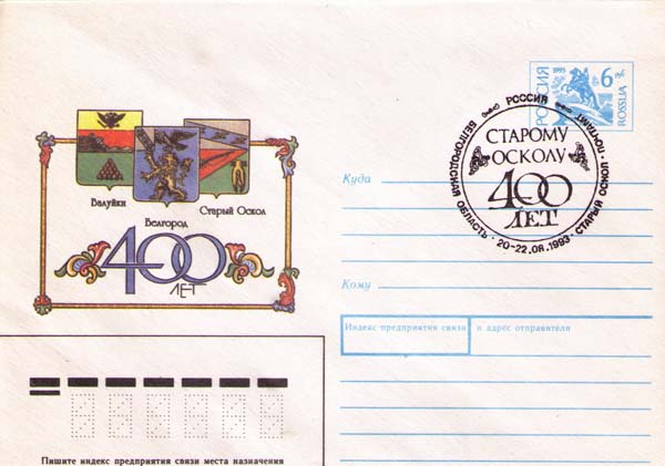 400-летние юбилеи городов Валуйки, Белгород, Старый Оскол. Гербы городов-юбиляров.