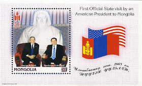 Президенты США Джордж Буш и Монголии Намбарын Энхбаяр у статуи Чингисхана.