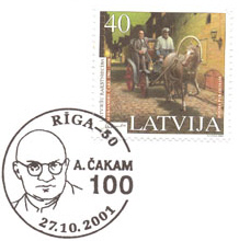 Рига. 100 лет со дня рождения Александрса Чака. Портрет Александрса Чака.