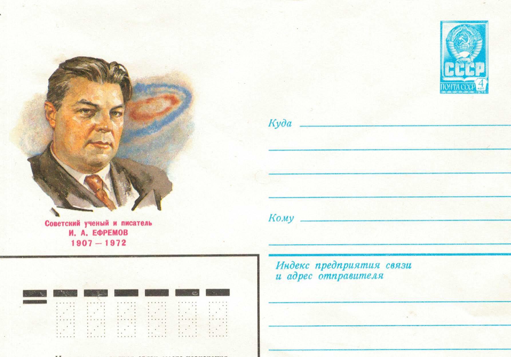 Портрет Ивана Ефремова на фоне изображения галактики.