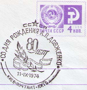 Киев. 80 лет со дня рождения Александра Довженко. Кинопленка, лавровая ветвь.