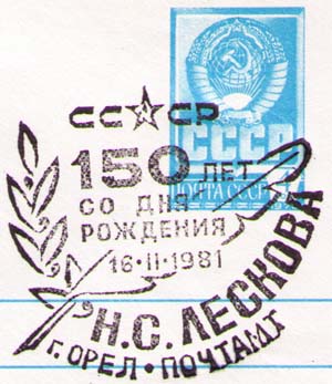 Орел. 150 лет со дня рождения Николая Лескова. Гусиное перо, лавровая ветвь.