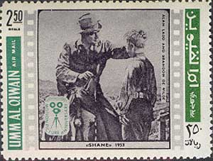 Кадр из фильма «Шейн» («Shane», 1953, США, режиссер Джордж Стивенс). Шейн (актер Алан Ладд) прощается со своим юным другом Джоем (актер Брендон де Уайлд).