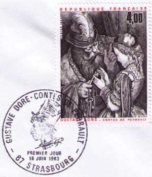 Страсбург. Первый день марки М2406. Портрет Густава Доре, надпись: «Густав Доре. Сказки Перро».