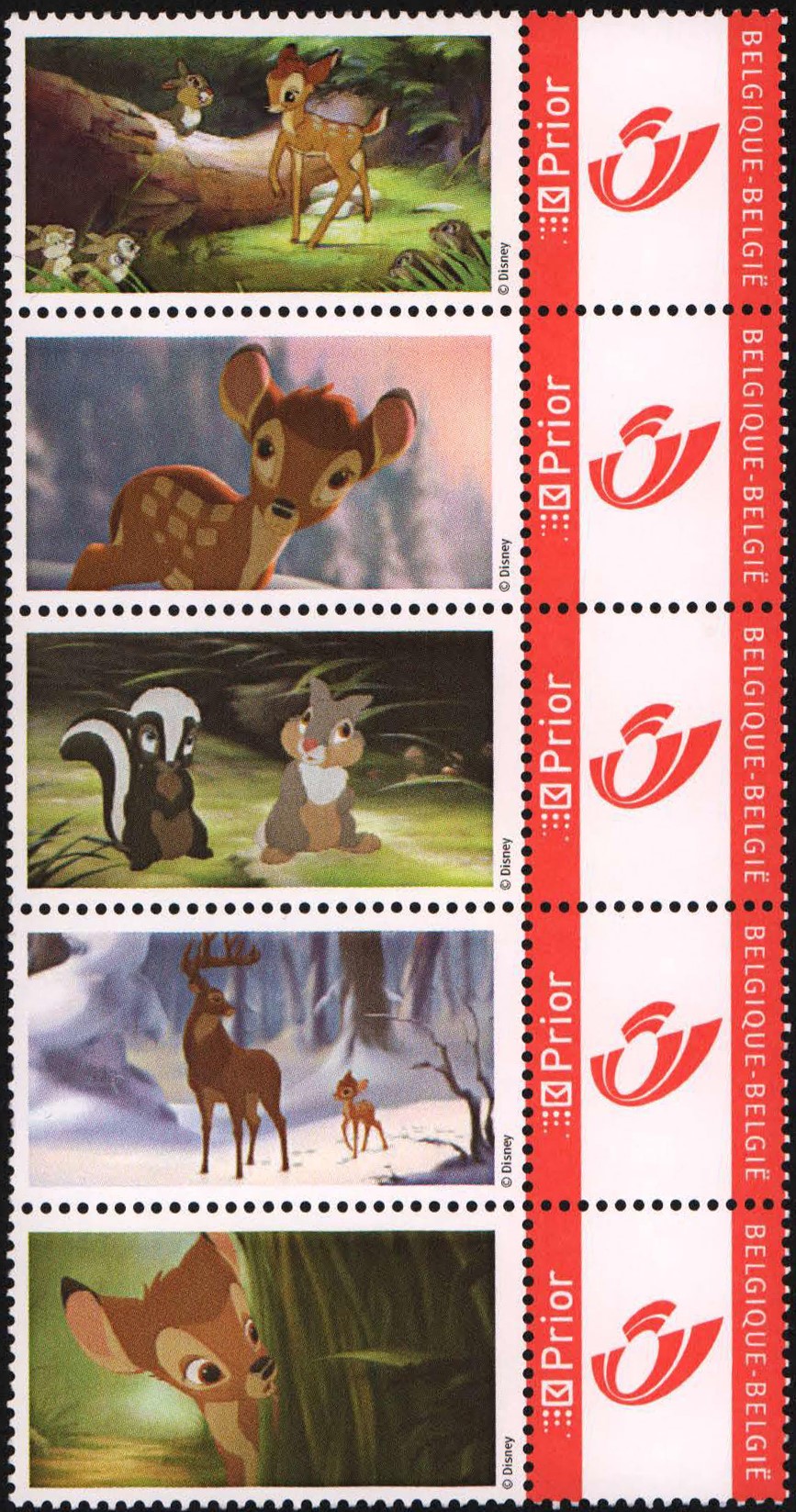 Стандартная марка была выпущена с купономи (дуостамп), на которых изображены кадры из мультипликационного фильма студии Уолта Диснея «Бемби».