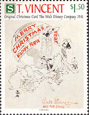 Рождественская открытка 1941 — Дамбо и другие герои мультфильмов украшают Землю.