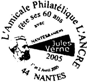 Нант. 60 лет сотрудничеству филателистов Нанта и Амьена. Портрет Жюля Верна.