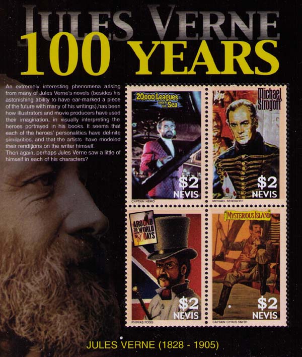 Марки изданы в малом листе. На поле листа — портрет Верна.